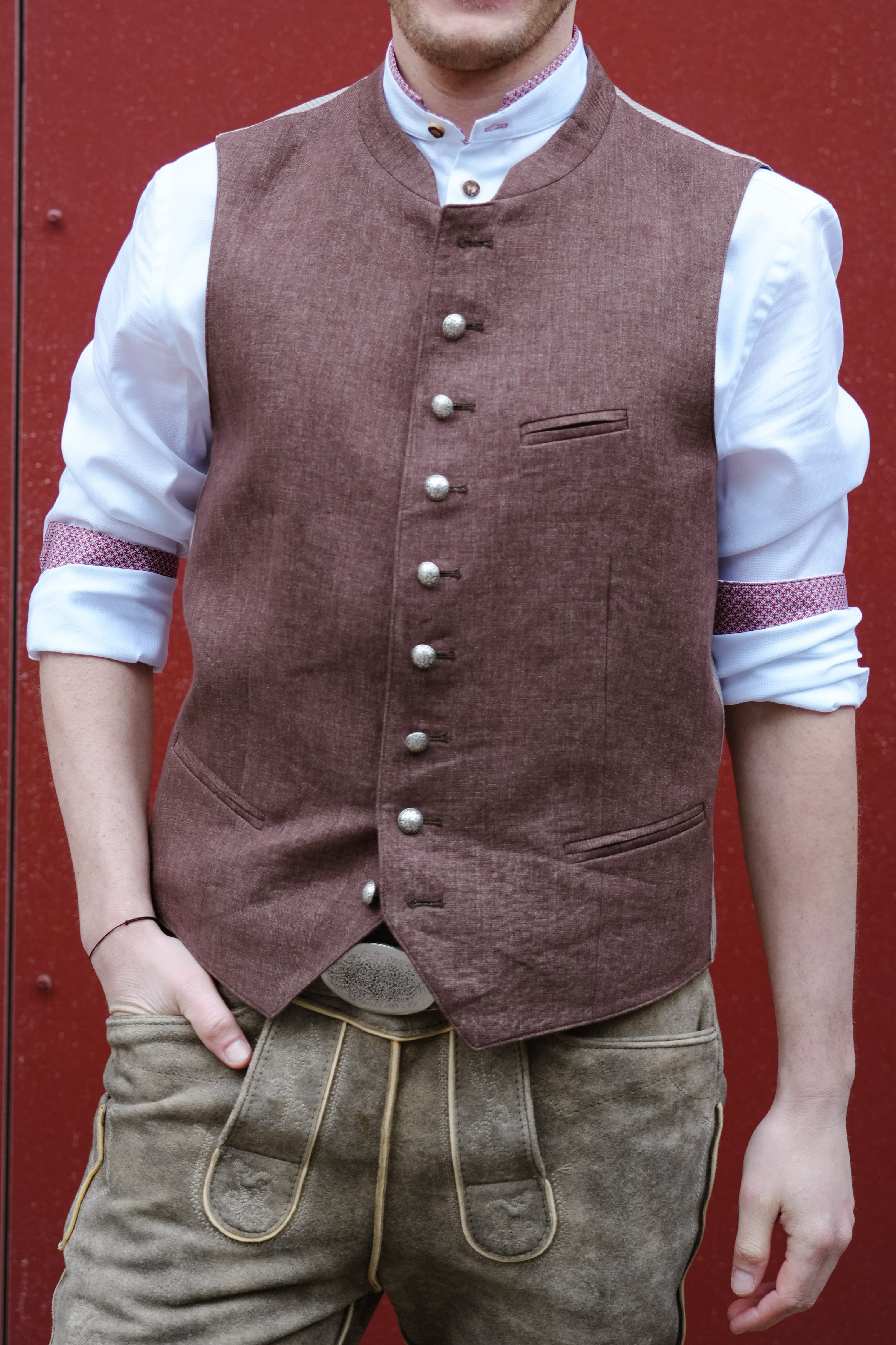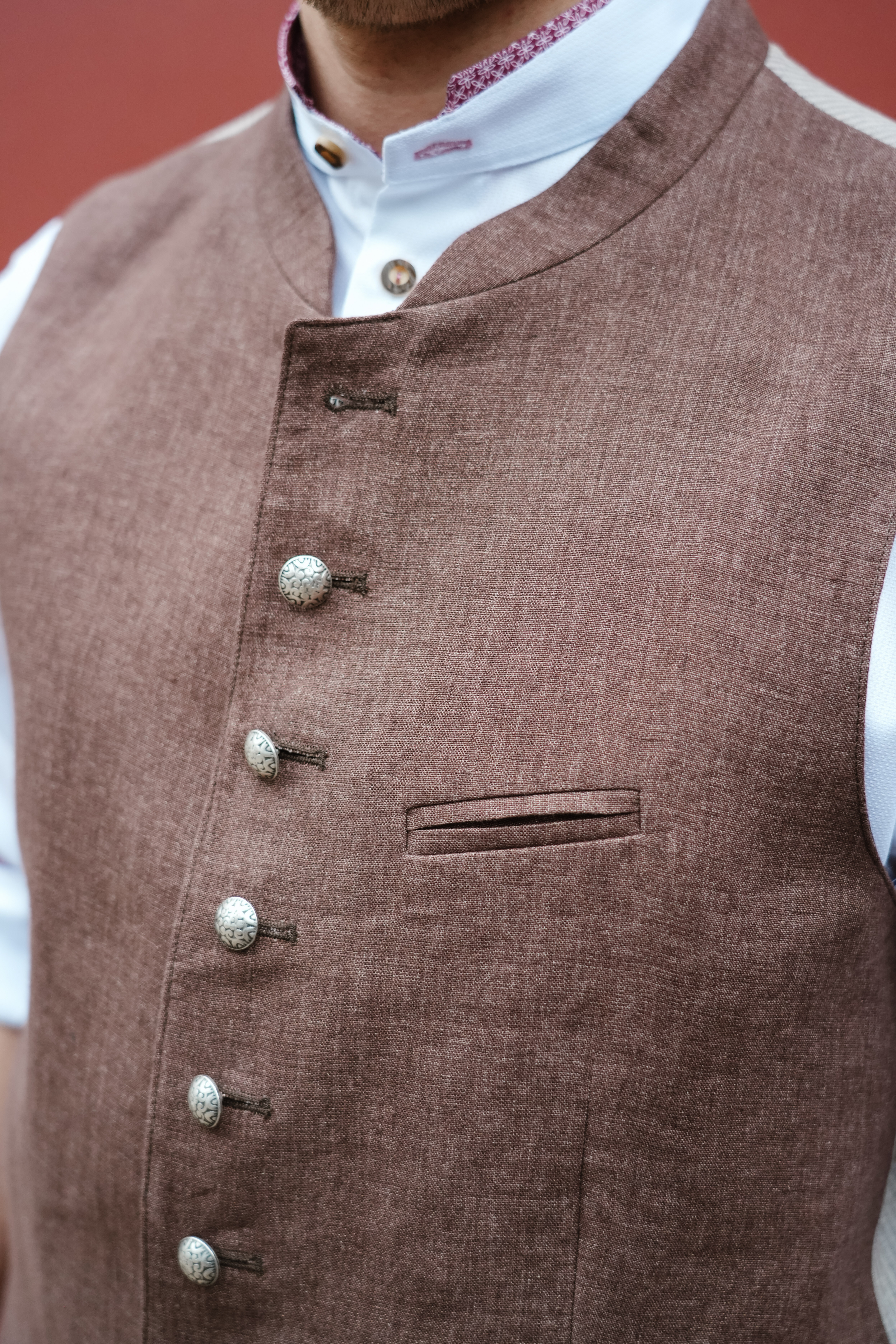 Das Gilet wird mit neun Metallknöpfen verschlossen.