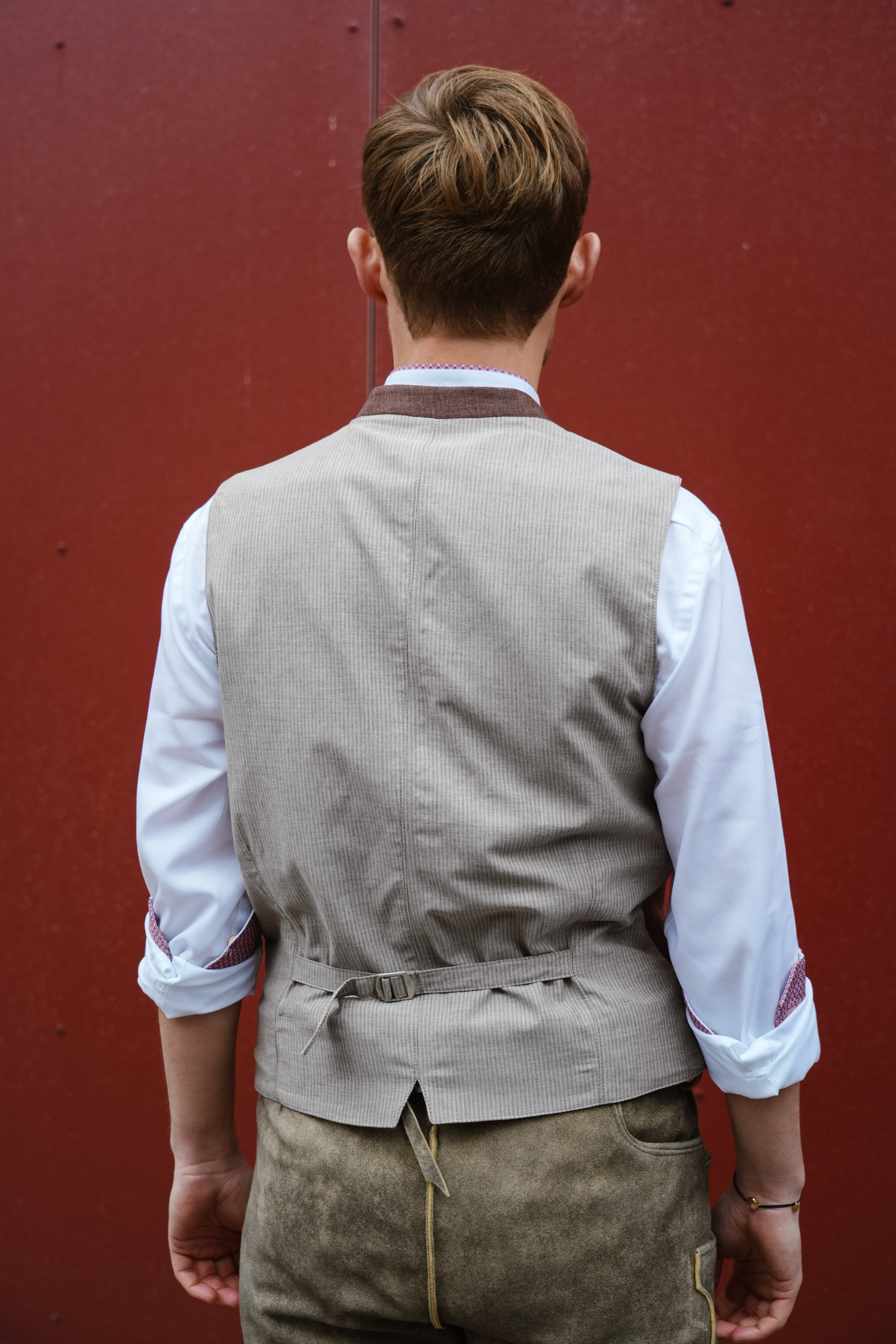 Dieses Gilet von Grasegger zeigt sich sehr schlicht in einer edlen Leinen-Optik.