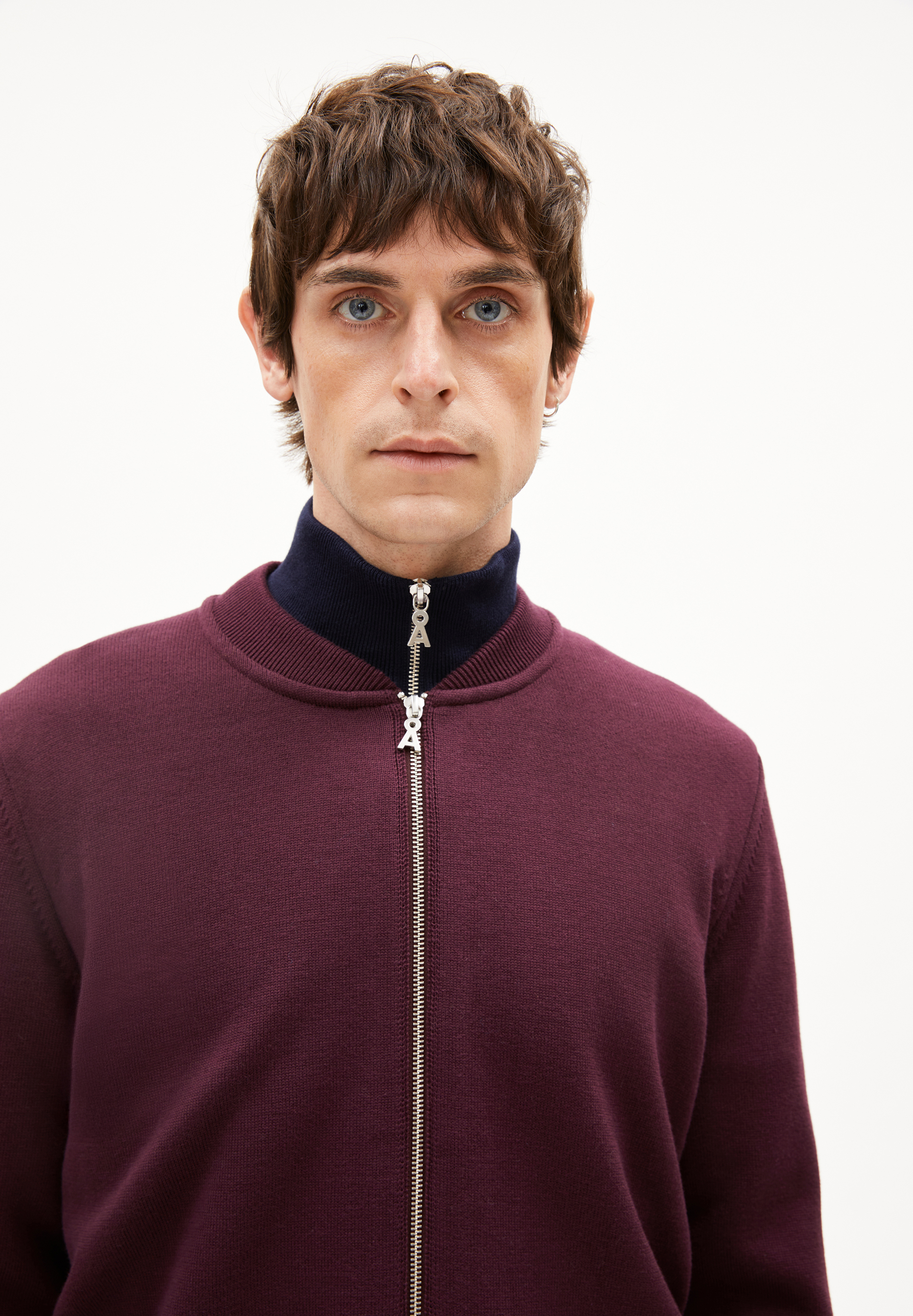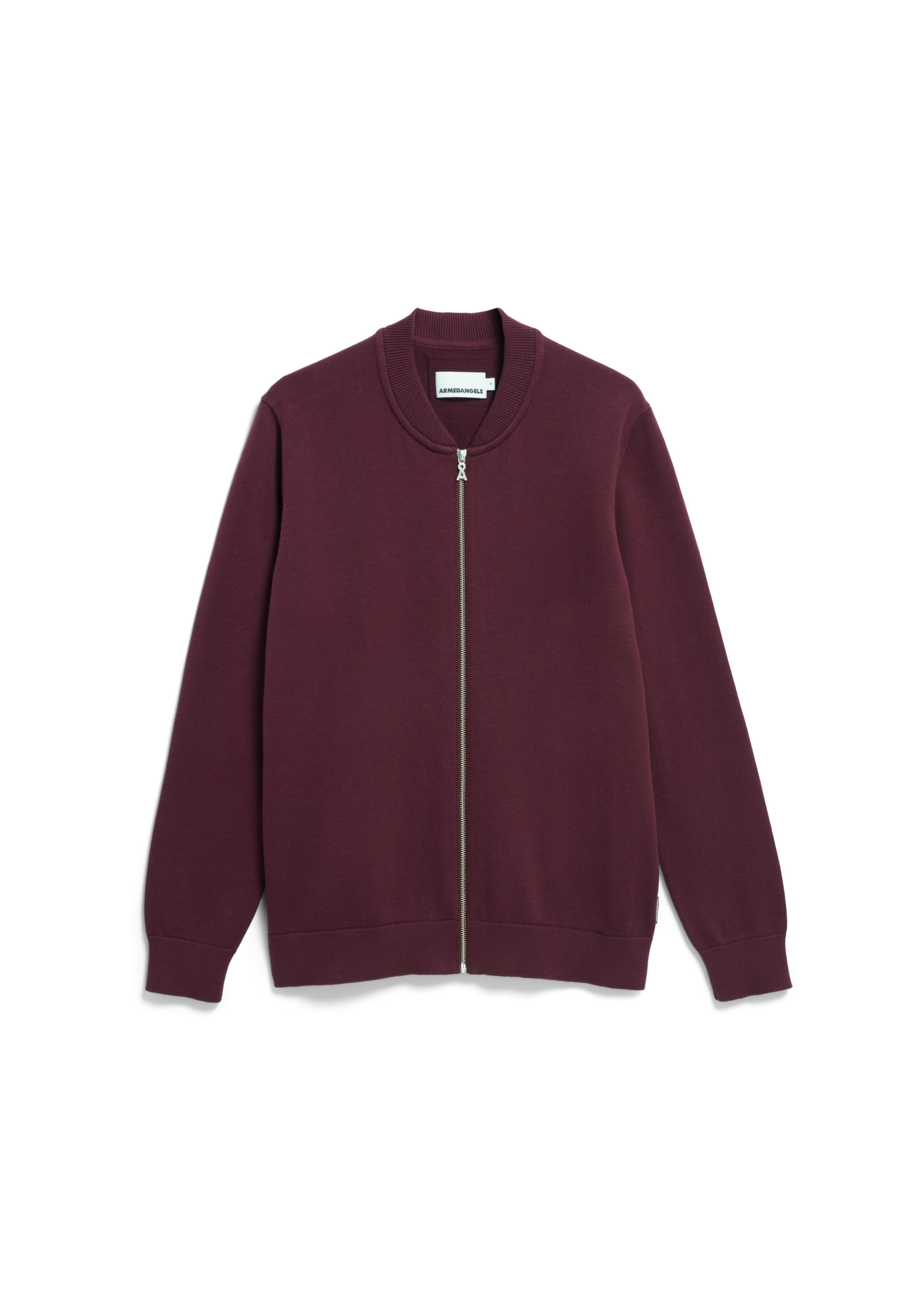 Die Jacke Agaamon von Armedangels vereint minimalistisches Design mit nachhaltiger Qualität. Gefertigt aus feinem, zertifiziertem Bio-Baumwollstrick überzeugt sie durch eine weiche Haptik und hohen Tragekomfort. Der gerade Schnitt und der durchgehende Metallreißverschluss mit dem charakteristischen A-Zipper verleihen dem Modell eine sportlich-elegante Note. Der satte Beerenton bringt Farbe in Ihre Garderobe, bleibt dabei aber dezent kombinierbar, ob über einem Hemd im Büro oder lässig mit T-Shirt und Jeans im Alltag. Rippbündchen an Saum und Ärmeln sorgen für eine perfekte Passform.