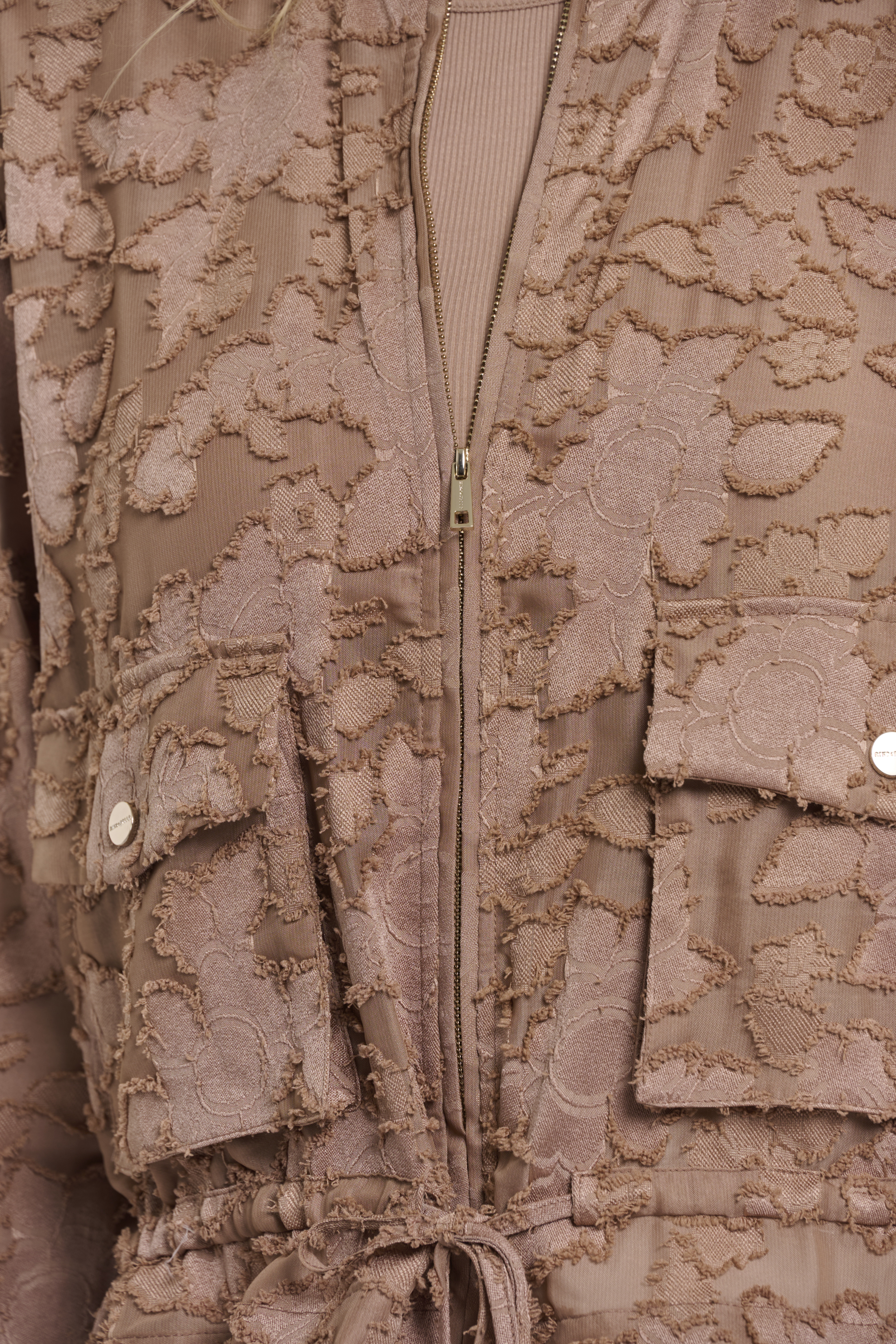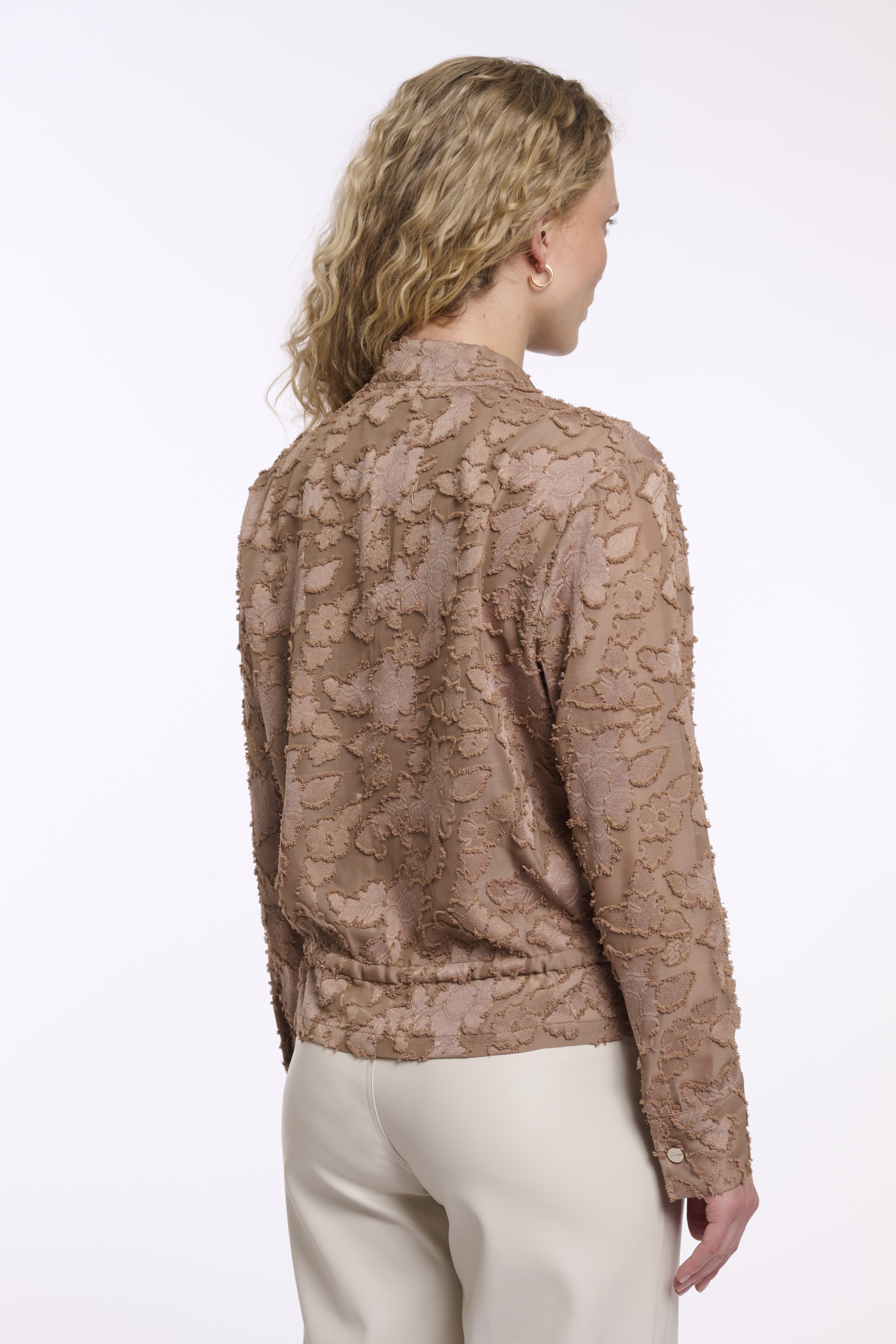 Diese stilvolle Damenjacke überzeugt mit ihrer feinen, strukturierten Spitze und einer modernen, femininen Ausstrahlung. Das zarte Material verleiht dem Modell eine edle Leichtigkeit, während der gerade Schnitt für eine zeitlose Silhouette sorgt. Der durchgehende Reißverschluss setzt einen cleanen, modernen Akzent und macht die Jacke besonders vielseitig kombinierbar.
