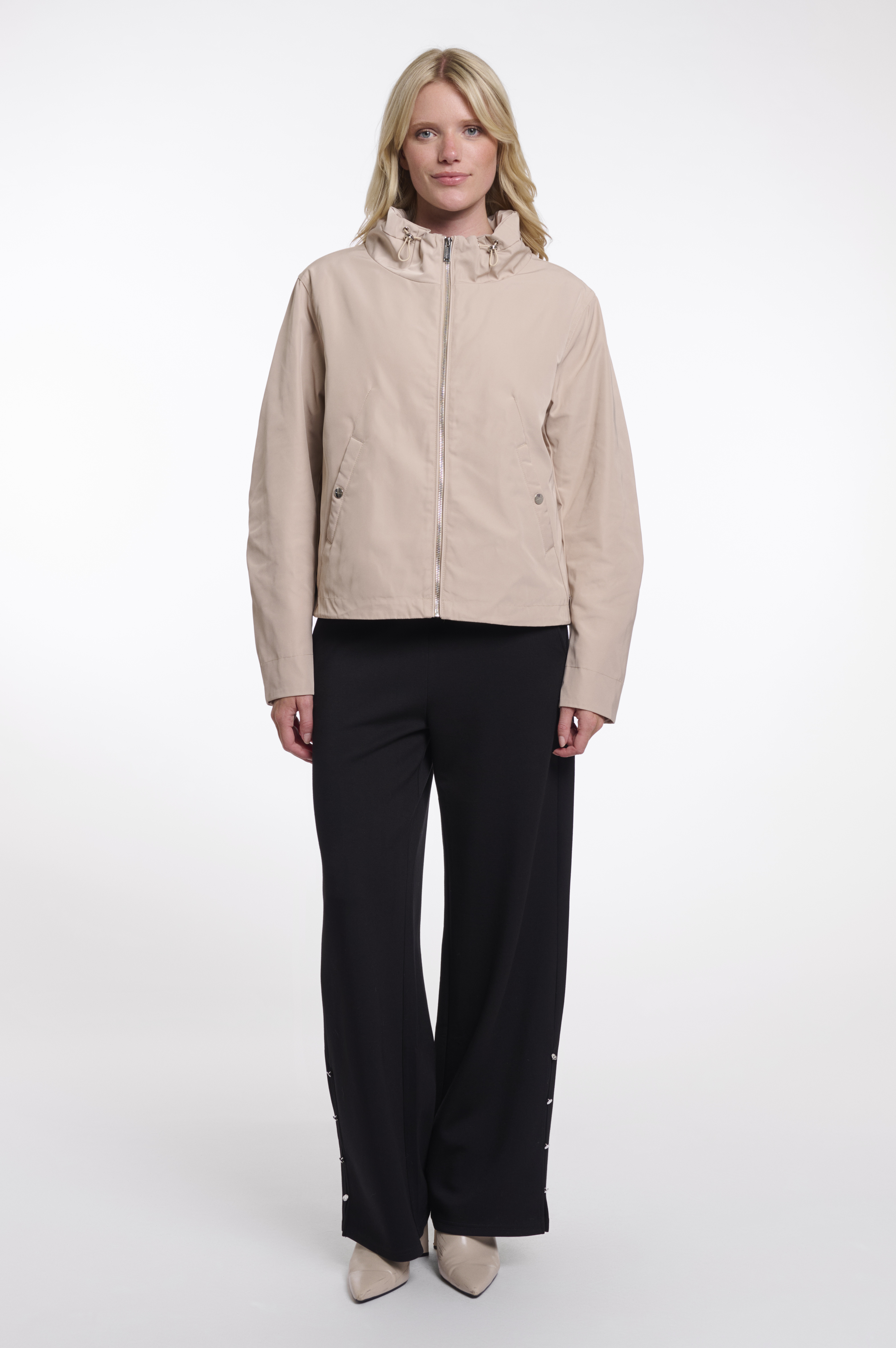 Diese moderne Jacke überzeugt mit klarer Linienführung und funktionalem Design. Der glatte, angenehm leichte Oberstoff sorgt für ein komfortables Tragegefühl und macht die Jacke zum idealen Begleiter für Übergangszeiten. Der durchgehende Reißverschluss und die praktische Kapuze mit Tunnelzug bieten Schutz und Flexibilität bei wechselndem Wetter. Dezente Eingrifftaschen mit Druckknopf ergänzen das puristische Design und bieten Platz für Kleinigkeiten. Die gerade Passform unterstreicht den zeitlosen Charakter der Jacke und lässt sich vielseitig kombinieren, ob sportiv zur Stoffhose oder lässig zu Jeans. Ein stilvolles Essential für einen gepflegten Alltagslook.