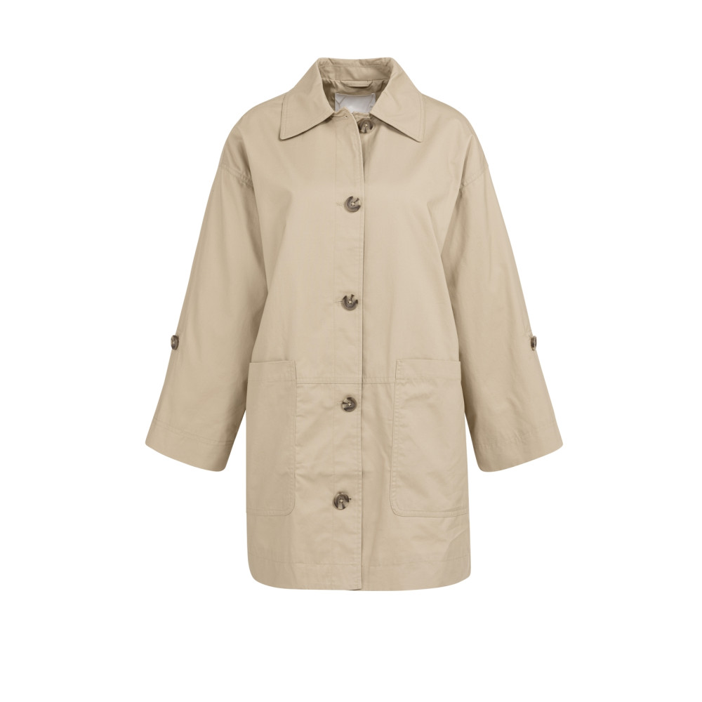 Dieser leichte Mantel überzeugt mit seinem zeitlosen Design und einer entspannten Silhouette. Die klassische Knopfleiste, der elegante Hemdkragen und die großzügigen aufgesetzten Taschen verleihen dem Modell eine moderne, unkomplizierte Ausstrahlung. Die lockere Passform sorgt für angenehmen Tragekomfort und macht den Mantel zum idealen Begleiter für die Übergangszeit.