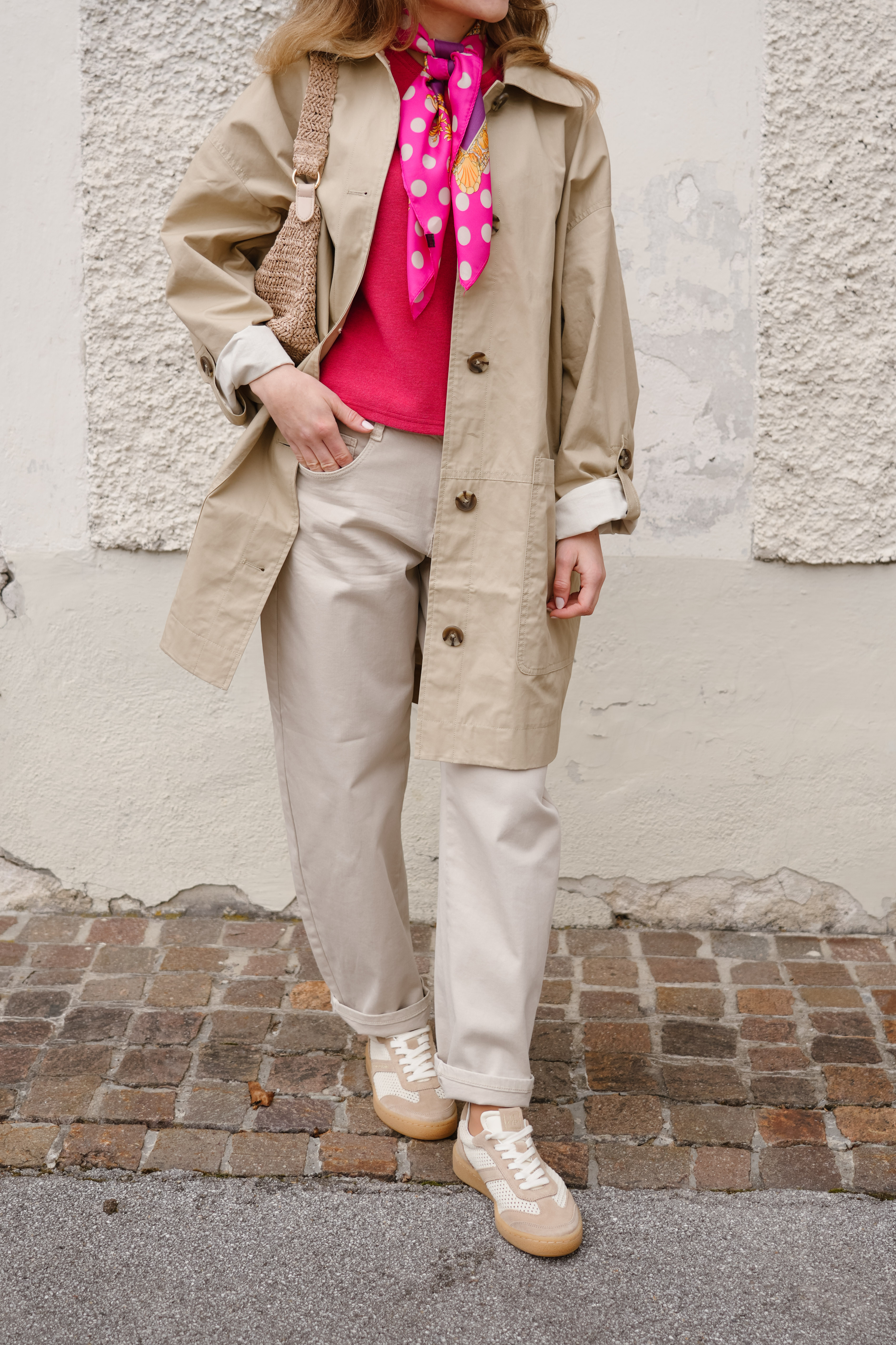 Dank seines schlichten, vielseitigen Looks lässt sich der Mantel mühelos zu unterschiedlichen Outfits kombinieren, ob lässig zu Jeans und Sneakern oder stilvoll über Kleidern und Stoffhosen. Die leicht verkürzten Ärmel mit dekorativen Knopfdetails unterstreichen den modischen Charakter.
