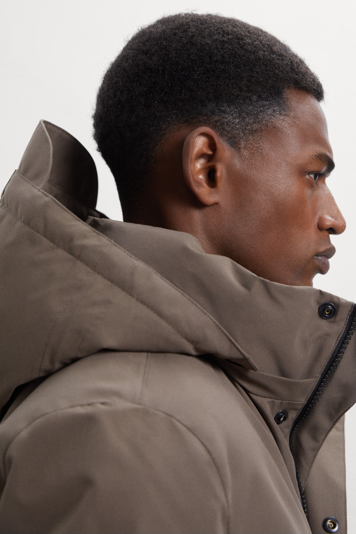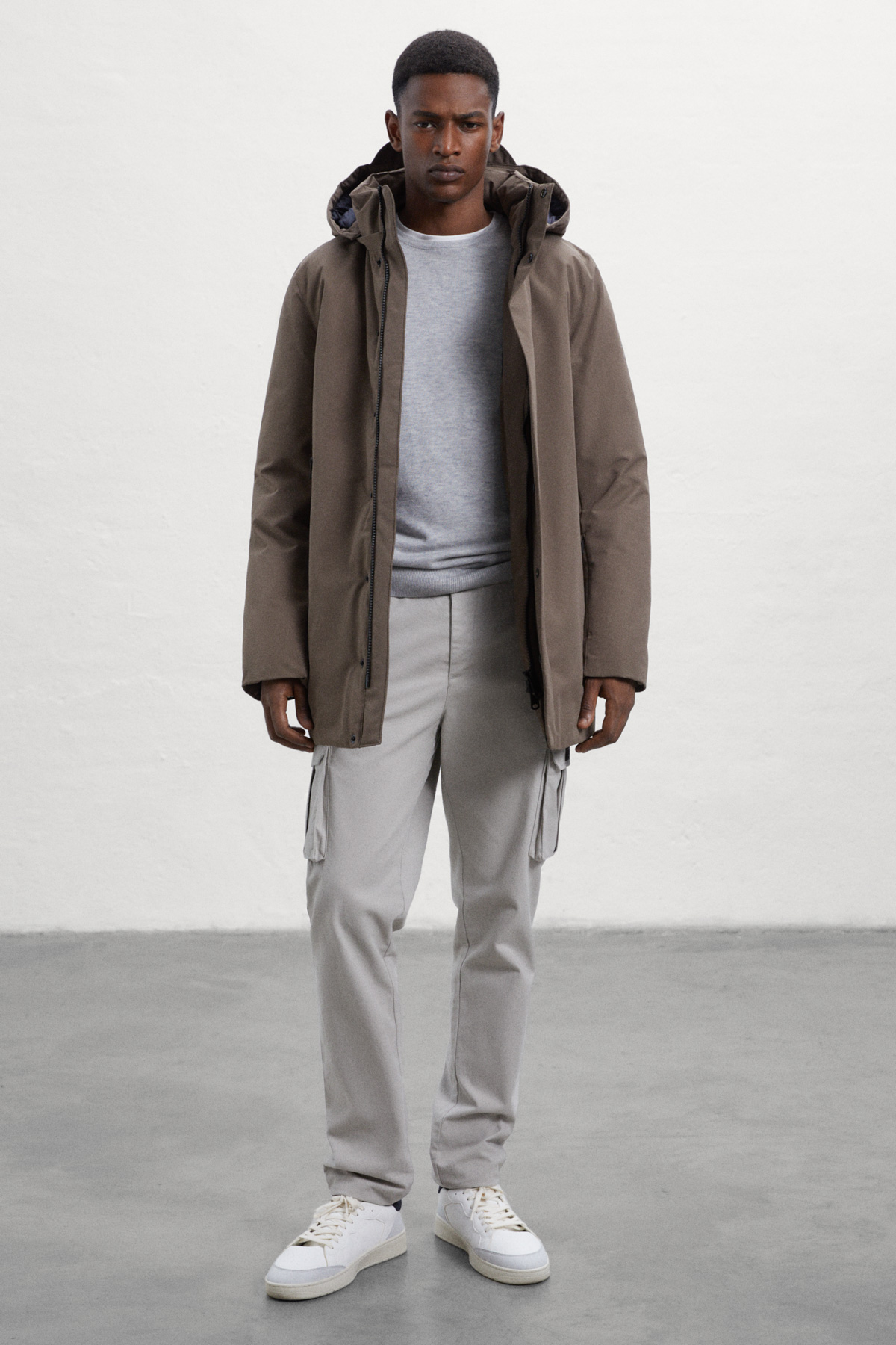 Der nachhaltige Parker für Herren hat einen normalen Schnitt und wird mit einem Zweiwege-Reißverschluss geschlossen.