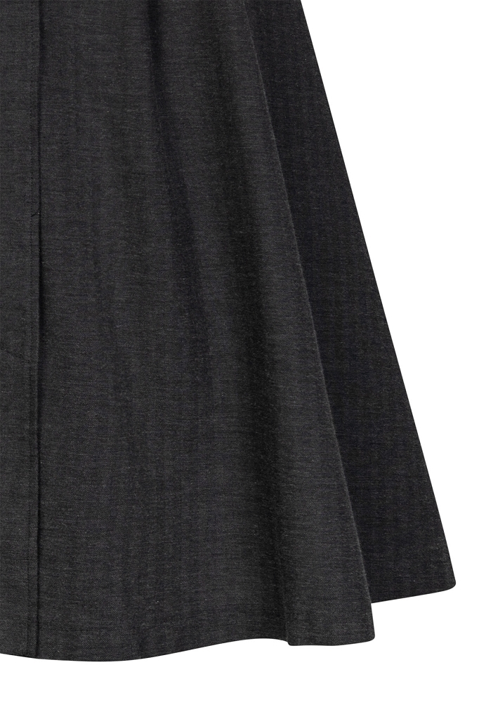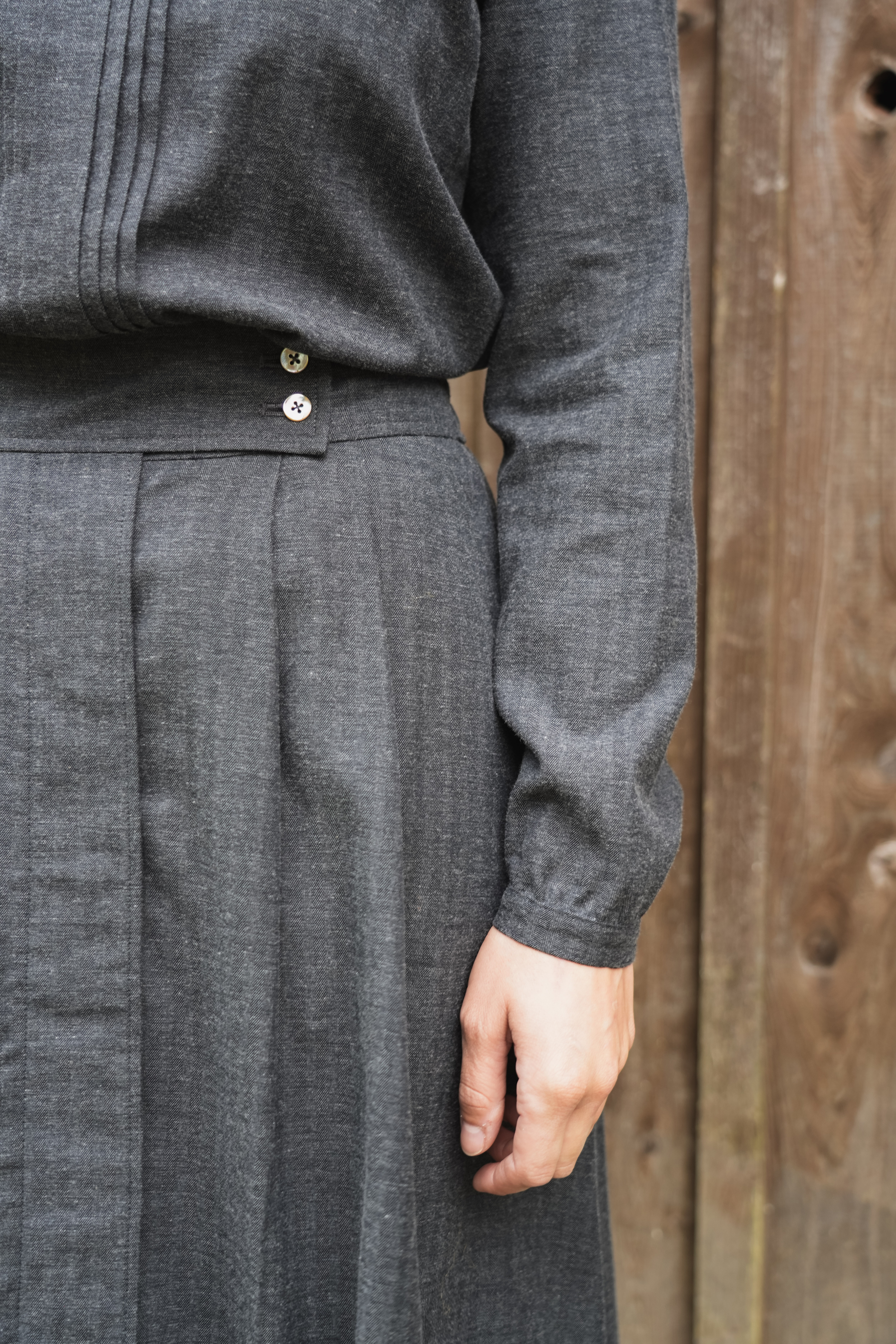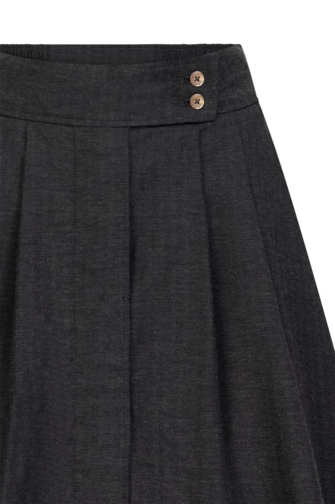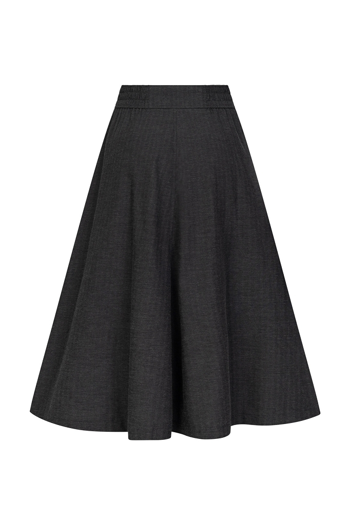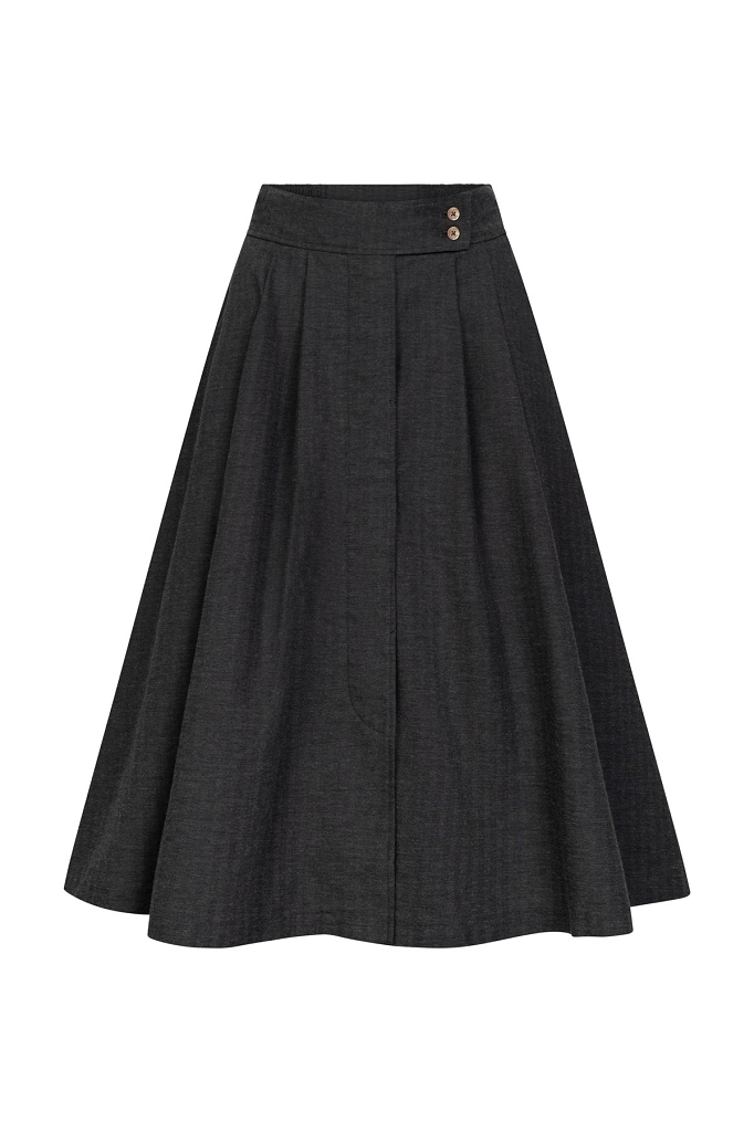 Der Rock Rada überzeugt durch seine zeitlose Eleganz und klassische Schnittführung. In einem feinen Dunkelgrau gehalten, lässt sich das Modell vielseitig kombinieren. Ob zur Bluse, zum Mieder oder zu modernen Strickteilen. Die leicht ausgestellte Silhouette und die sorgfältig gesetzten Falten verleihen dem Rock eine wunderschöne, feminine Linie mit fließendem Fall.