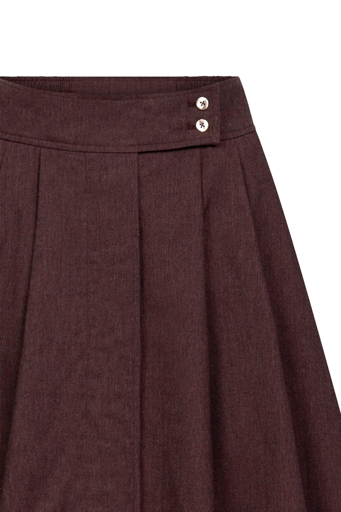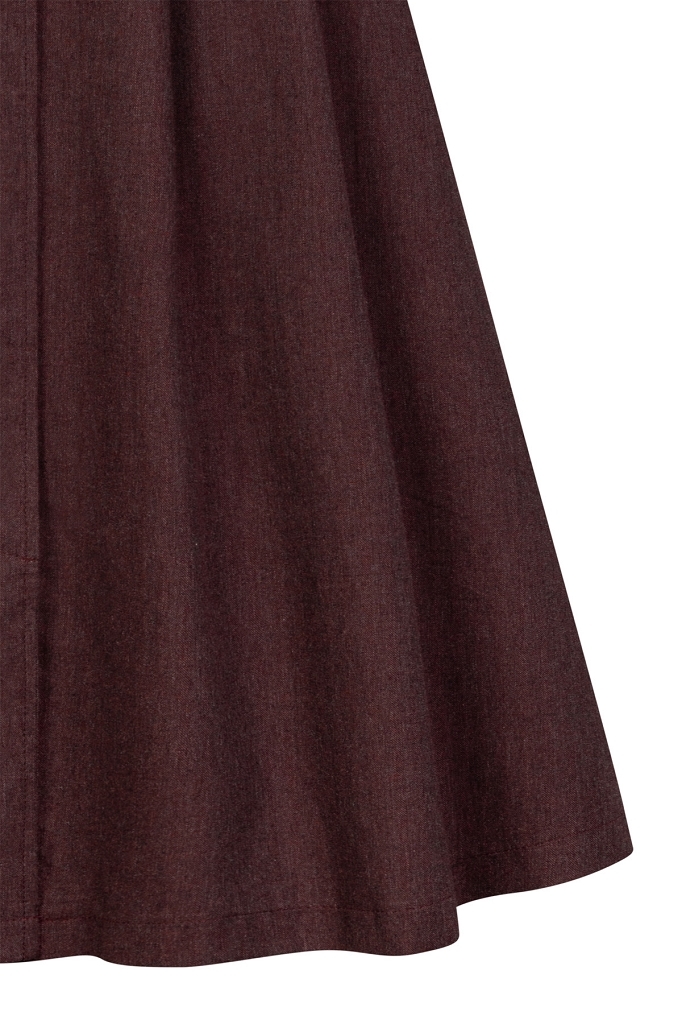 Der Rock Rada überzeugt durch seine zeitlose Eleganz und klassische Schnittführung. In einem feinen Dunkelgrau gehalten, lässt sich das Modell vielseitig kombinieren. Ob zur Bluse, zum Mieder oder zu modernen Strickteilen. Die leicht ausgestellte Silhouette und die sorgfältig gesetzten Falten verleihen dem Rock eine wunderschöne, feminine Linie mit fließendem Fall.