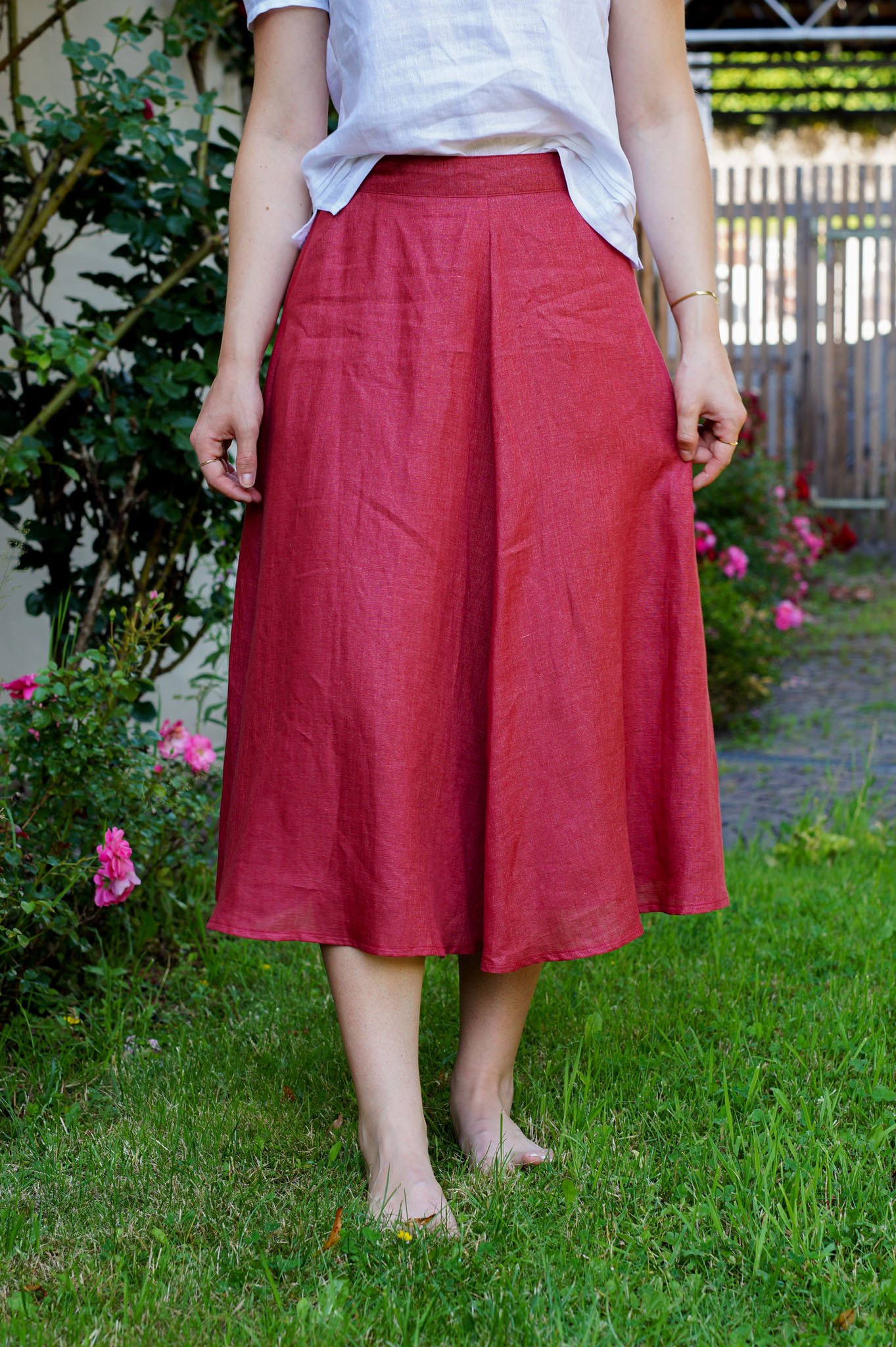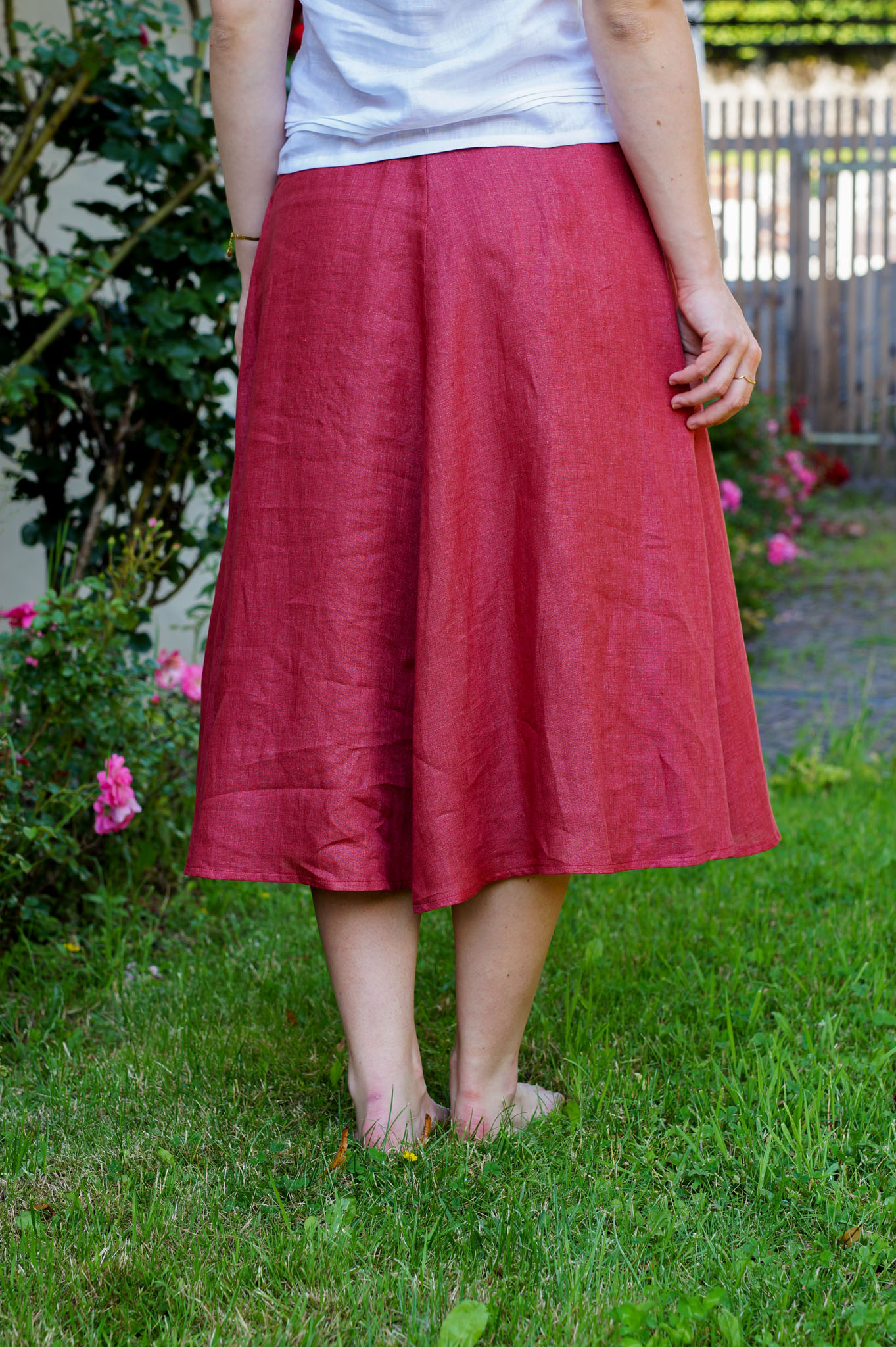Der Leinenrock in dem wunderschönen Himbeer-Ton ist vielseitig einsetzbar.