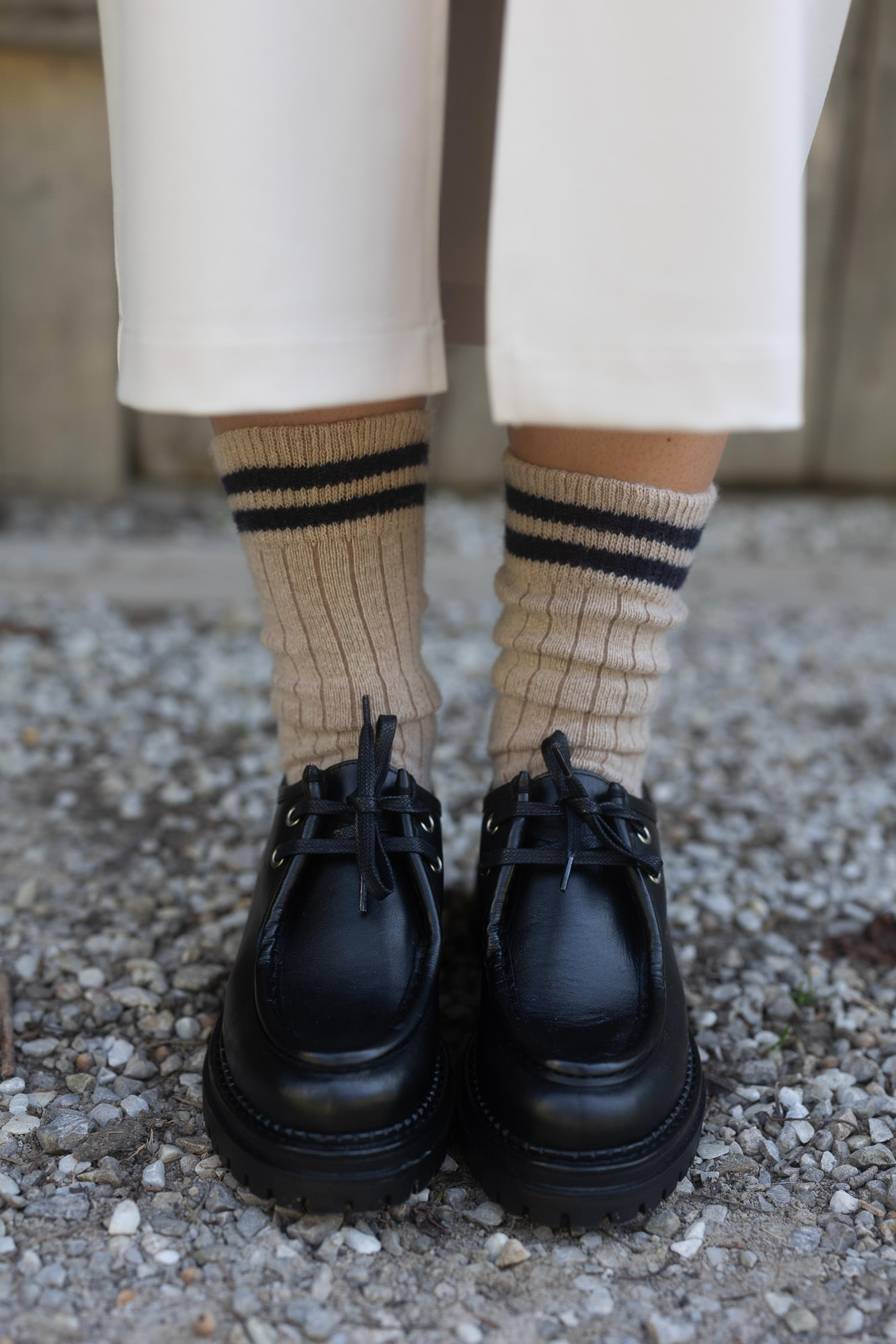 Die markante, grobe Sohle setzt einen besonderen Akzent und verleiht dem Schuh Charakter, wodurch er sowohl zu eleganten als auch zu legeren Outfits passt.