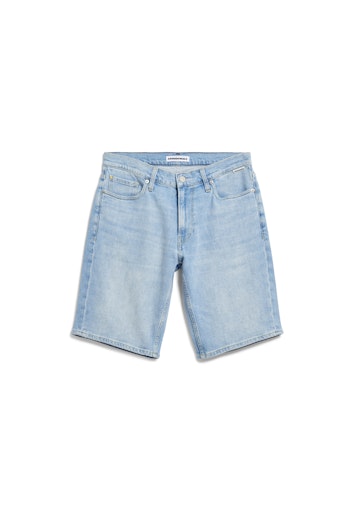 Diese Jeansshorts von Armedangels ist ein sommerlicher Klassiker mit nachhaltigem Anspruch. Gefertigt aus hellblauem Denim überzeugt sie mit einem authentischen Look und modernem Schnitt. Die Shorts sitzt regulär auf der Hüfte und endet knapp oberhalb des Knies – ideal für warme Tage. Klassische Elemente wie der 5-Pocket-Stil, Gürtelschlaufen und eine sichtbare Knopfleiste sorgen für den typischen Denim-Charakter. Der umgeschlagene Saum verleiht der Shorts eine lässige Note. Auf der Rückseite setzt ein Lederpatch mit Armedangels-Logo ein dezentes Statement.