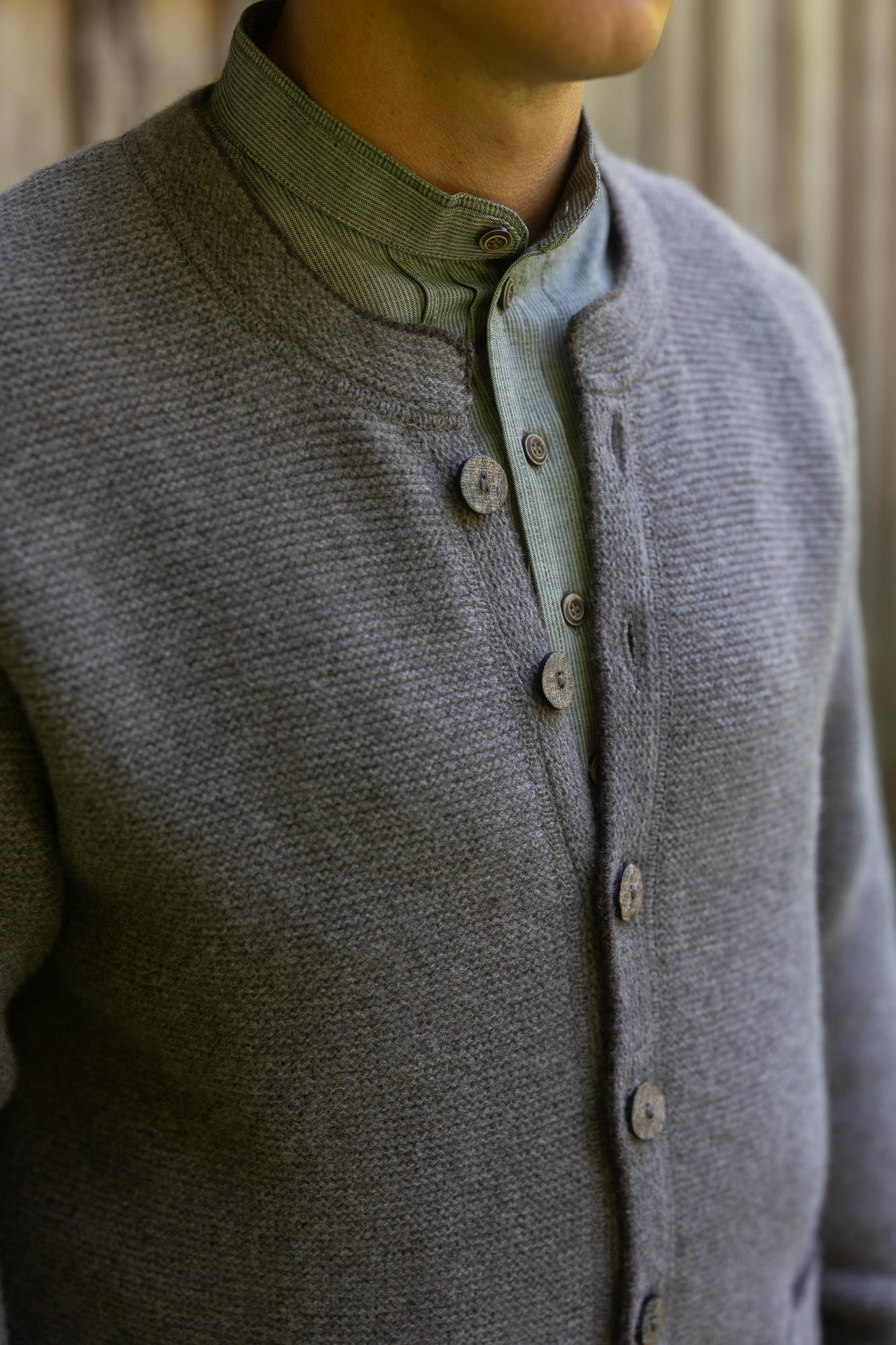 Die Trachtenstrickweste aus feiner Merinowolle hat einen schmalem Stehkraken und wurde liebevoll im Hause Quehenberger designt. Sie ist mit einem schönen erdbraunen Strickrand an der Kante, am Kragen und an der Ärmellänge eingefasst.