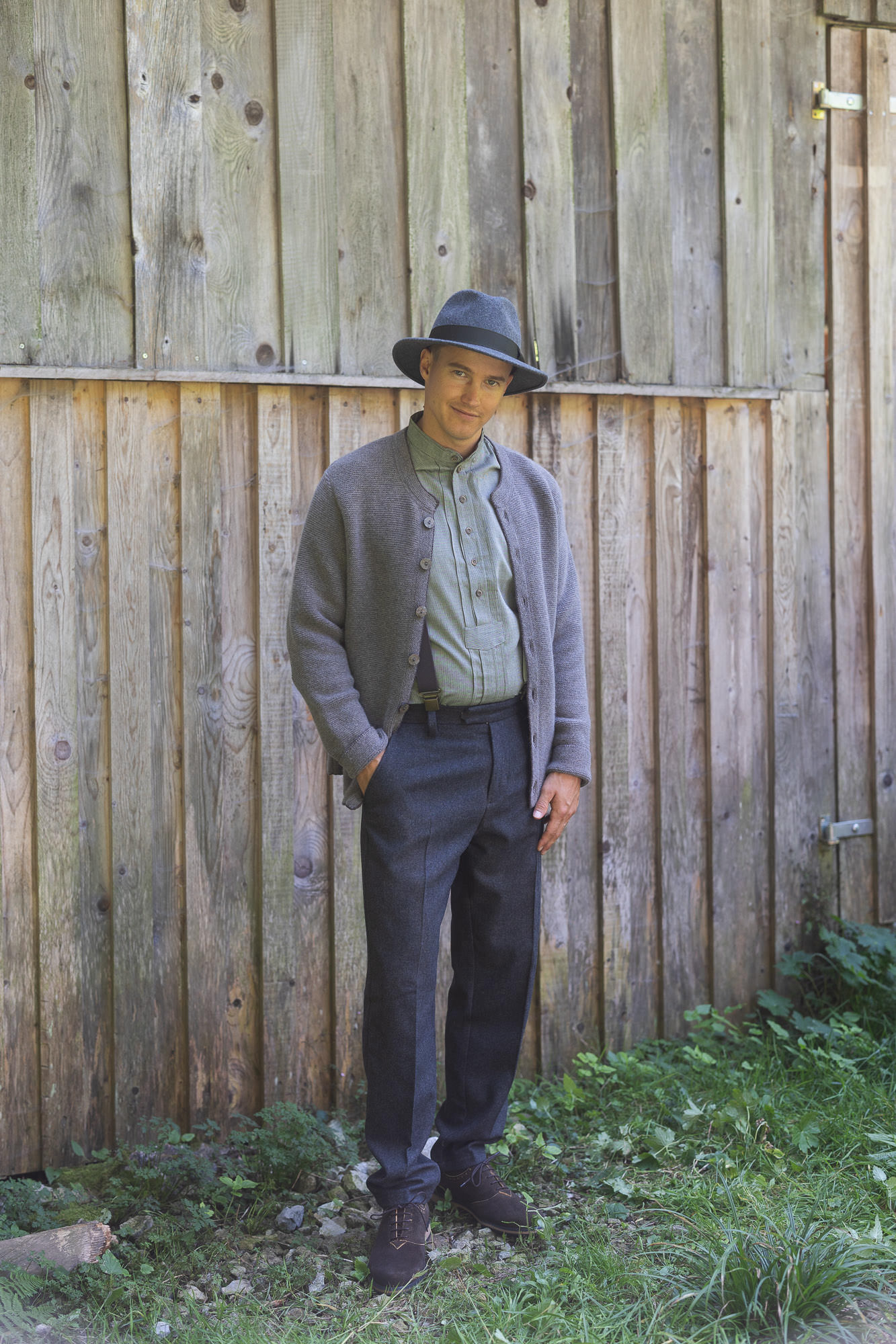 Die Strickweste hat einen schmalen kurzen Schnitt und kann super zur kurzen Lederhose kombiniert werden, oder auch etwas sportlicher zur Jeans.