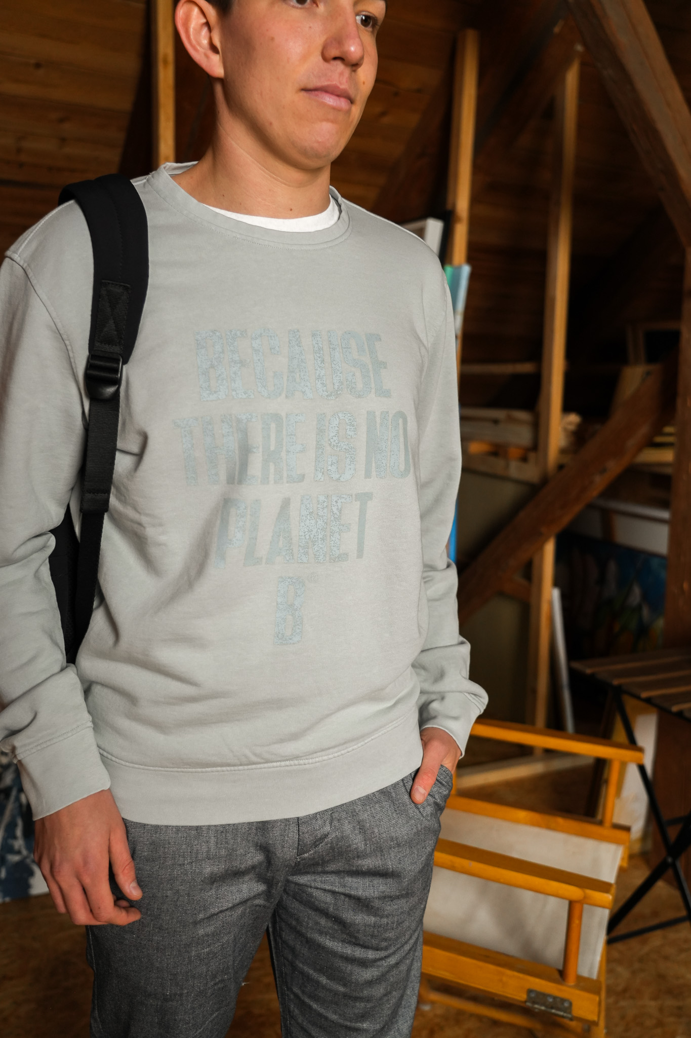 Lässiger Stil mit Botschaft: Dieses Sweatshirt in sanftem Mintgrün setzt mit dem großen Frontprint "Because There Is No Planet B" ein klares Zeichen für Nachhaltigkeit. Gefertigt aus weicher Bio-Baumwolle bietet es dank der lockeren Passform und den klassischen Details wie Rundhalsausschnitt, gerippten Bündchen an Ärmeln und Saum sowie leicht überschnittenen Schultern hohen Tragekomfort. Perfekt für entspannte Freizeitlooks mit einem bewussten Statement.