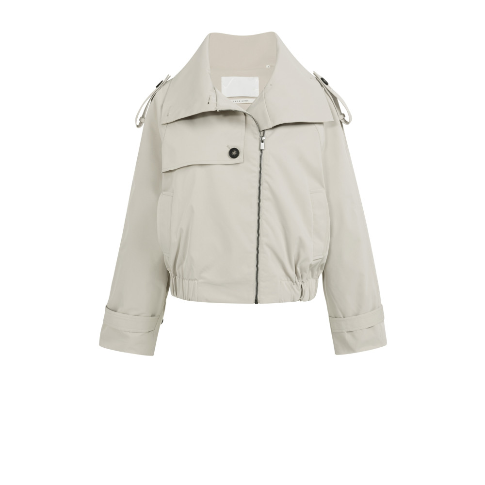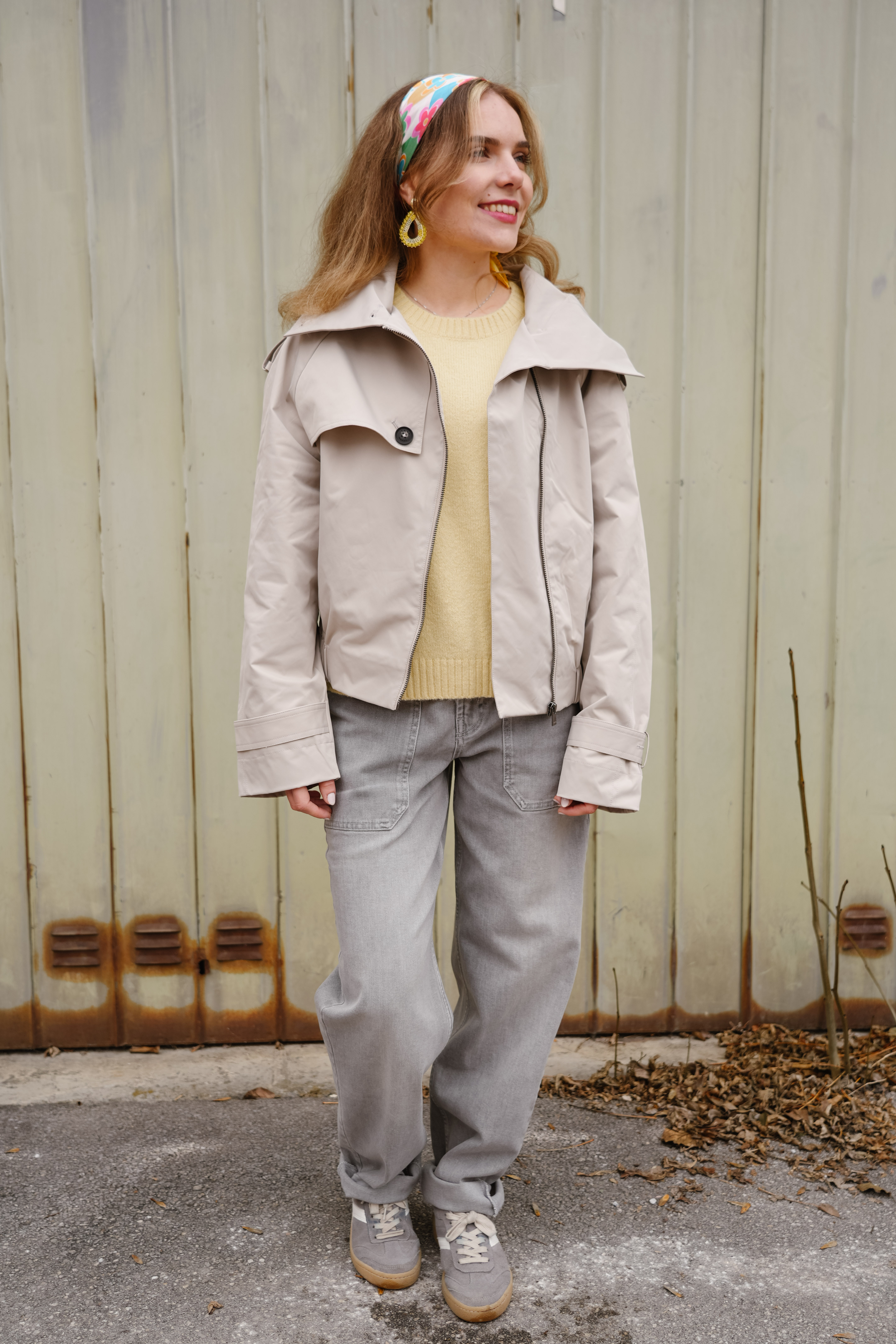 Die leicht verkürzte Silhouette mit elastischem Saum sorgt für eine feminine Passform, während seitliche Eingrifftaschen und verstellbare Ärmelriegel praktische Details bieten. Dank des leichten Materials ist die Jacke ideal für die Übergangszeit und lässt sich perfekt zu Jeans, Stoffhosen oder Röcken kombinieren.